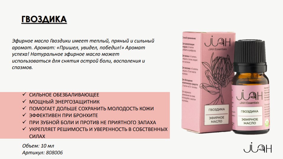 Эфирное масло ГВОЗДИКА 100% натуральный состав. Объем: 10 мл.