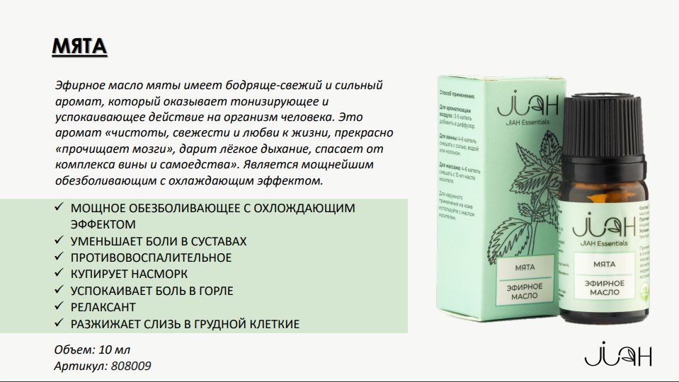 Эфирное масло МЯТА 100% натуральный состав. Объем: 10 мл