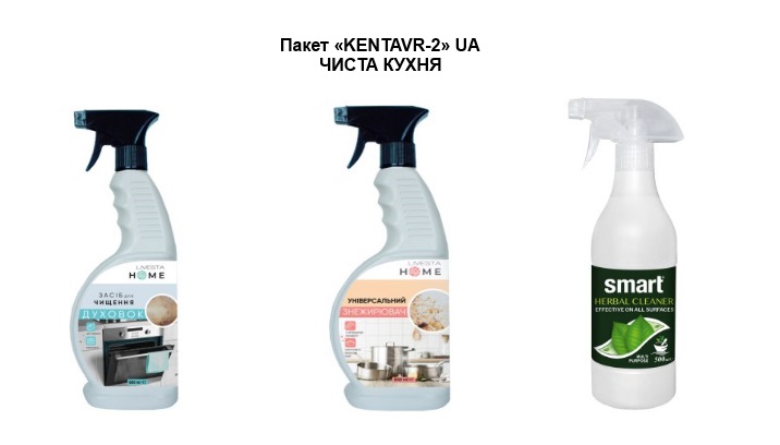 Пакет «KENTAVR-2» ЧИСТА КУХНЯ Засіб для чищення духовок LIVESTA, 650 мл+Універсальний знежирювач LIVESTA, 650 мл+Універсальний рослинний очисник Smart, 500 мл