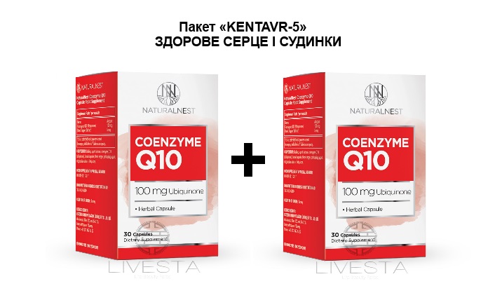 Пакет «KENTAVR-5» ЗДОРОВЕ СЕРЦЕ І СУДИНКИ Дієтична добавка "Коензим Q10" NATURALNEST, 30 желатинових капсул
