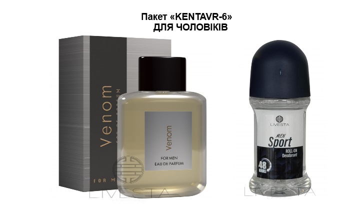Пакет «KENTAVR-6» ДЛЯ ЧОЛОВІКІВ Парфумована вода для чоловіків Venom, 50 мл+Чоловічий роликовий дезодорант Livesta Sport, 50 мл