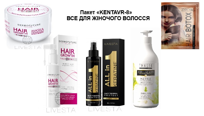 Пакет «KENTAVR-8» ВСЕ ДЛЯ ЖІНОЧОГО ВОЛОССЯ Активна маска для стимуляції росту волосся для жінок DermoFuture, 300 мл + Спрей-догляд для стимуляції росту волосся для жінок DermoFuture, 300 мл+ Ензимний шампунь-пілінг із конопляною олією DermoFuture, 200 мл