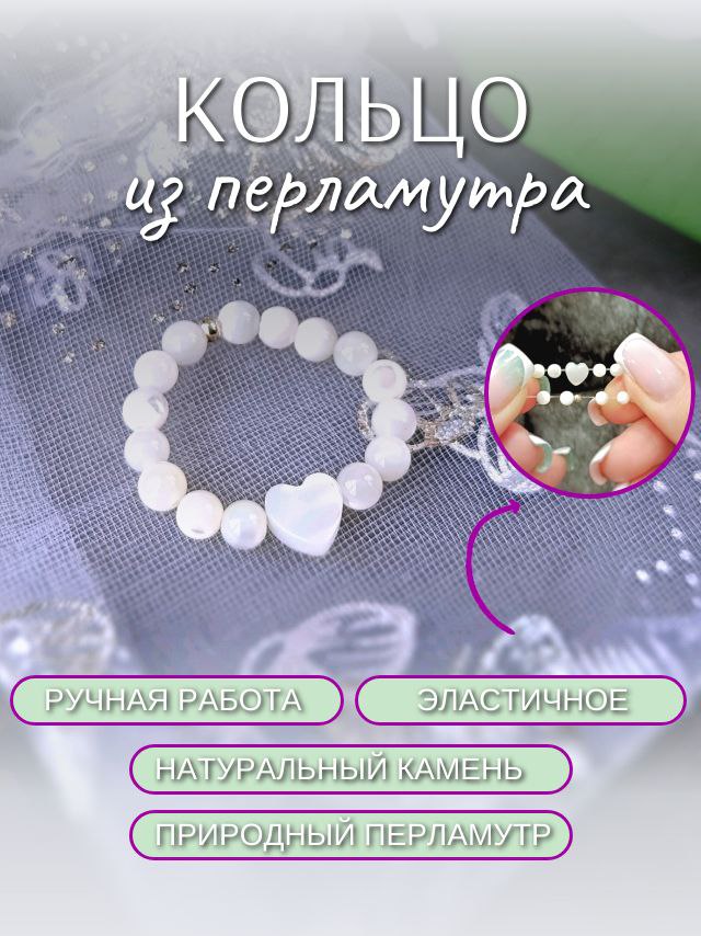 Колечко с сердечком, выполненное из натурального перламутра. Ручная работа. Камни активированы энергопрактиком. Доставка Почта России 3 -7дней.
