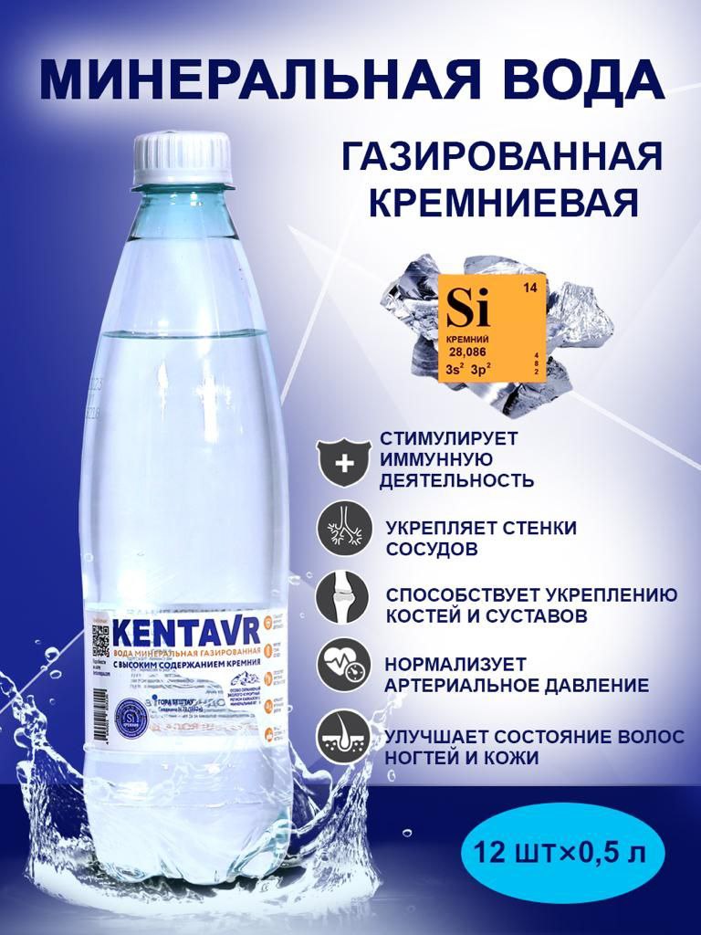Кремниевая минеральная вода KENTAVR ™ природная питьевая лечебно-столовая газированная. Цена указана за 1 упаковку (12 ПЭТ бутылок по 0,5л.) (Доставка только по России)