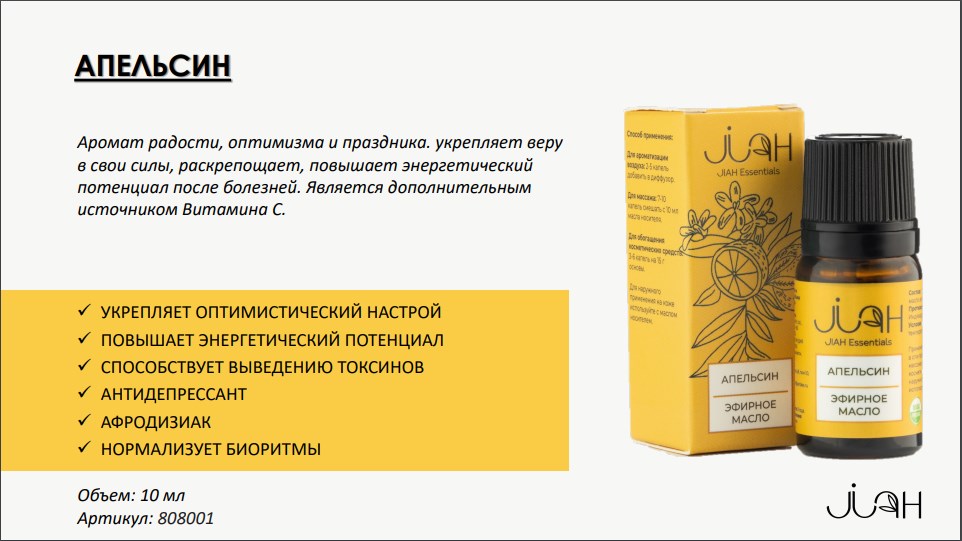 Эфирное масло АПЕЛЬСИН 100% натуральный состав Объем: 10 мл