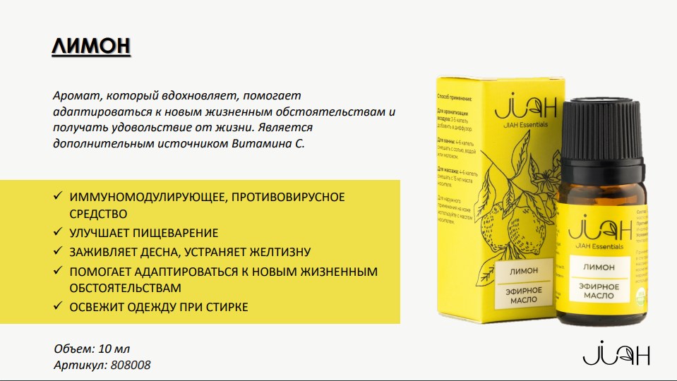 Эфирное масло ЛИМОН 100% натуральный состав Объем: 10 мл