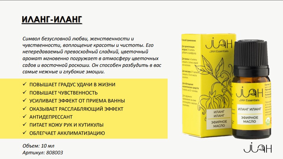 Эфирное масло ИЛАНГ-ИЛАНГ 100% натуральный состав. Объем: 10 мл