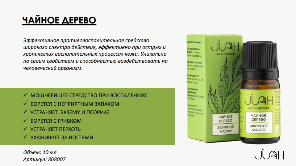 Эфирное масло ЧАЙНОЕ ДЕРЕВО 100% натуральный состав. Объем: 10 мл