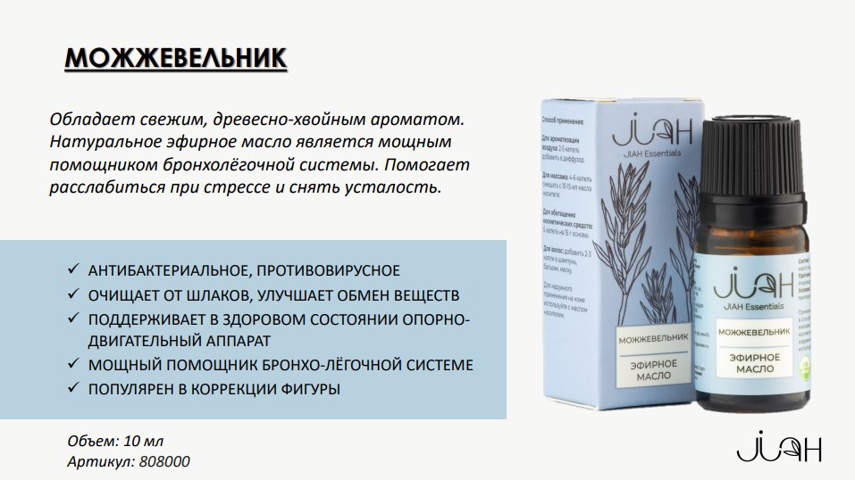 Эфирное масло МОЖЖЕВЕЛЬНИК 100% натуральный состав. Объем: 10 мл